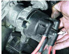 5. Отсоедините центральный высоковольтный провод от крышки распределителя зажигания. 6. Отсоедините шланг вакуумного усилителя от впускной трубы двигателя.