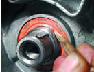 14. Перед установкой насоса смажьте рабочую кромку сальника моторным маслом. При установке насоса аккуратно заправьте рабочую кромку сальника на шейку коленчатого вала с помощью деревянной палочки. После этого заверните болты крепления насоса. Затем установите все снятые детали в обратном порядке. Отрегулируйте натяжение ремня привода распределительного вала.