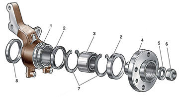В поворотном кулаке (рис. Поворотный кулак и детали ступицы переднего колеса)
