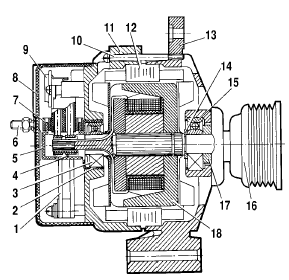 Статор 12 (рис. 7-5) и крышки 11 и 13 стянуты четырьмя винтами. Вал ротора 18