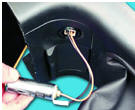 3. Проденьте колодки с проводами прикуривателя и лампы подсветки через отверстие в облицовке туннеля пола.
