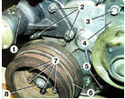 1. Снять ремень привода вентилятора (см. подраздел 2.2.3, пункт 1).