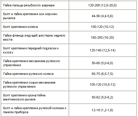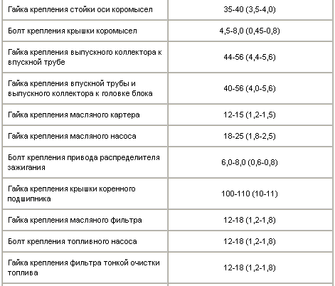 Моменты затяжки ответственных резьбовых соединений *Волга / Приложения / Моменты затяжки ответственных резьбовых соединений *